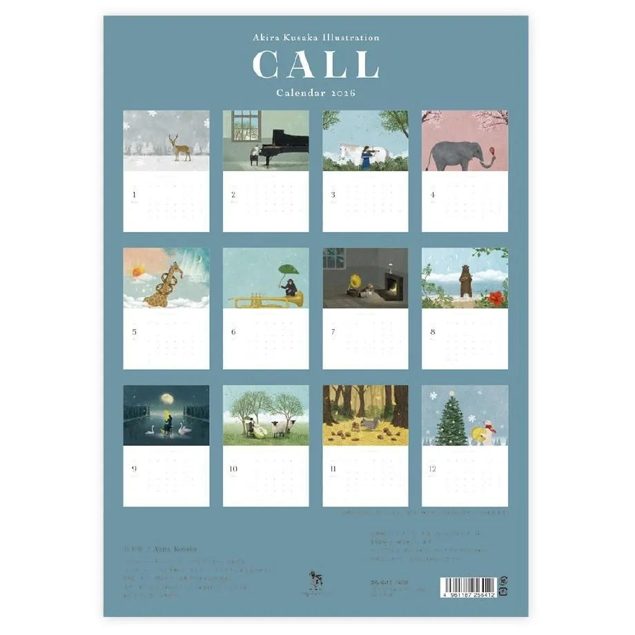 Akira Kusaka's whimsical 2026 calendar is back to brighten your year! Featuring enchanting illustrations brimming with curious creatures and delightful musical instruments, each month invites you to pause and daydream about the stories woven into every scene. Crafted on premium Vent Nouveau paper with a satisfying sturdy feel, this calendar doubles as wall art that transforms any space into a gallery. The best part? Each page detaches easily, so you can pin, frame, or tuck it into a folder—making it as flexible as your imagination. Pure cosy vibes, month after month.