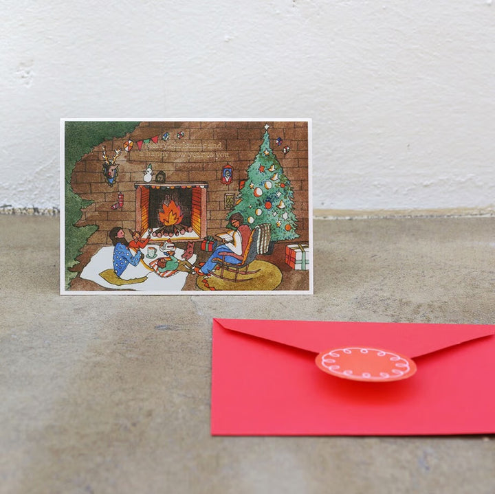 Get cozy with this cute and festive illustrated Christmas card! Perfect for sending greetings for both Christmas and New Year's.