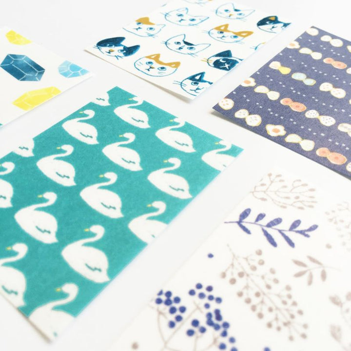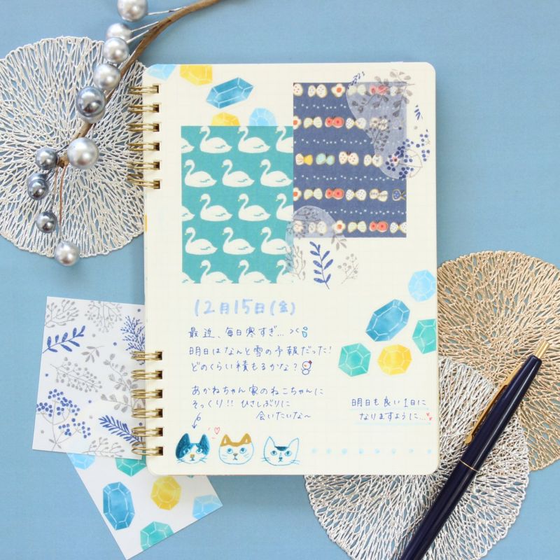 These square stickers are recommended for decorating notebooks, and are available in cute colors and patterns. Just by sticking one sticker on a page, you can make the page more gorgeous. Also, the masking material can be peeled off even after sticking!