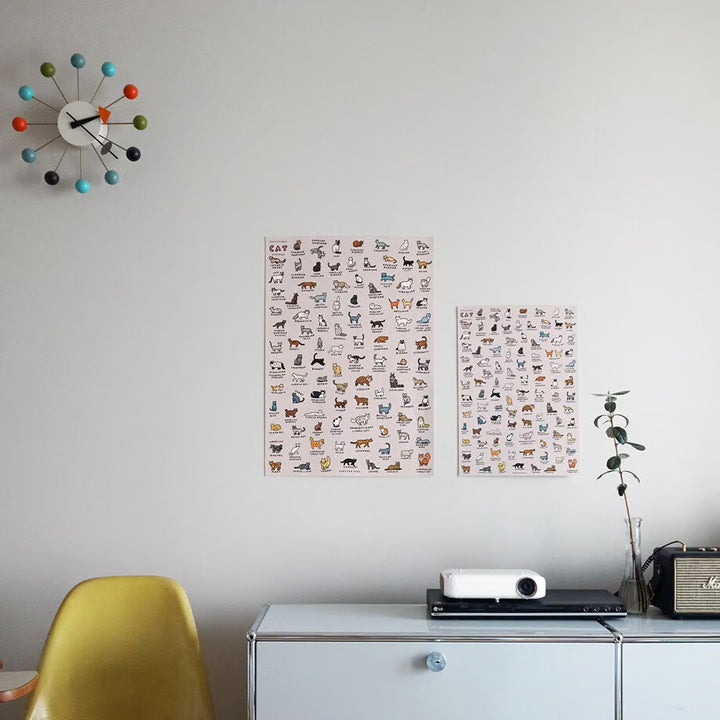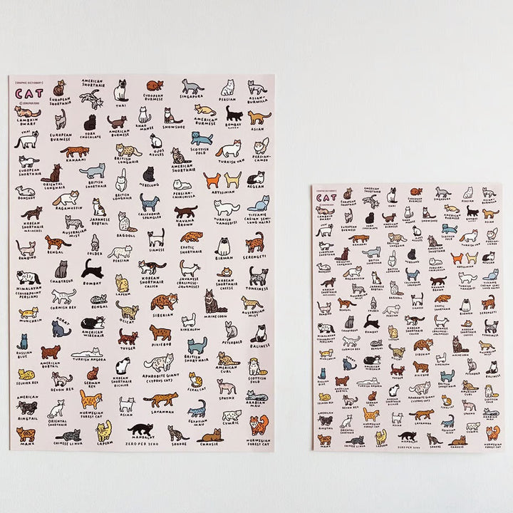 Graphic Dictionary Poster GRAPHIC DICTIONARY is one of the projects by ZERO PER ZERO, which expresses various topics such as culture and stories through graphic design like a dictionary. GRAPHIC DICTIONARY "CAT 2", which depicts many cat breeds, has been made into an art poster.