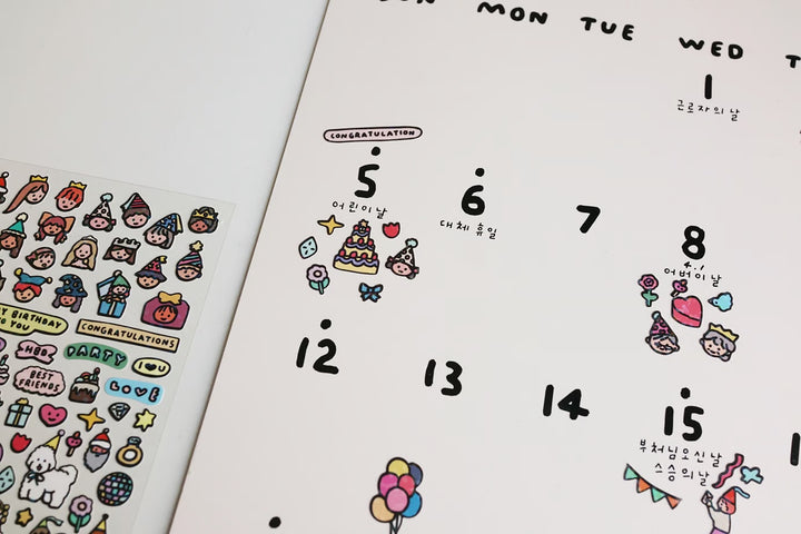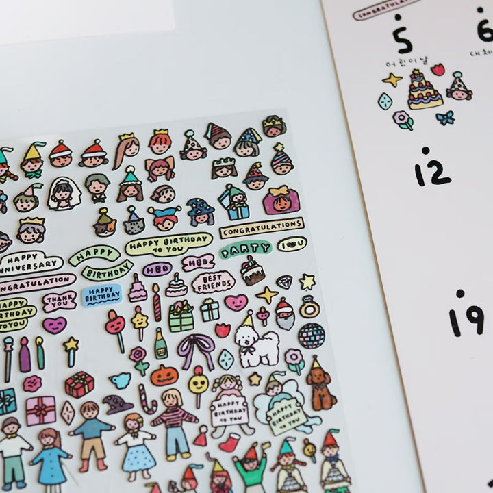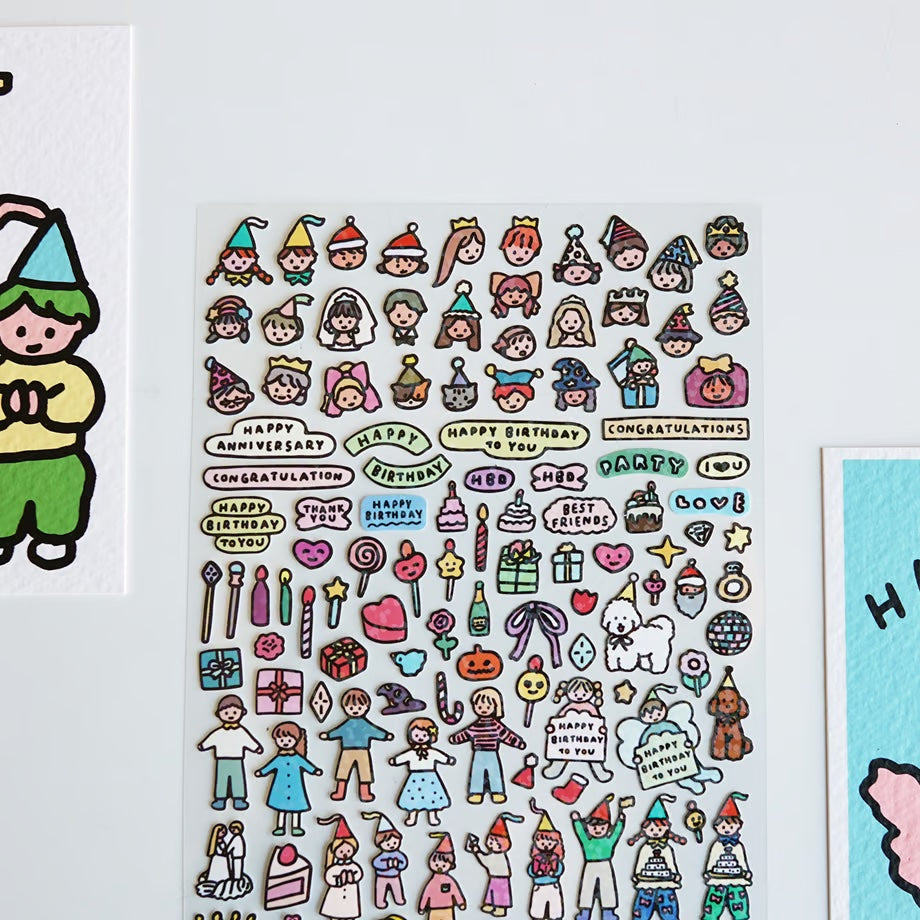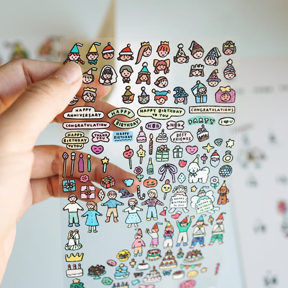 Jazz up your notebooks and schedule books with this mini hologram sticker! Simply peel and stick to add some party vibes with colorful party hats, cakes, and candles. Get ready to party on!