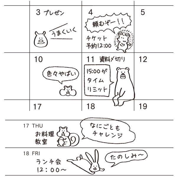 It is a handwritten style design that blends in well when you add speech bubbles. The animals' unique expressions allow you to express your mood for the day.