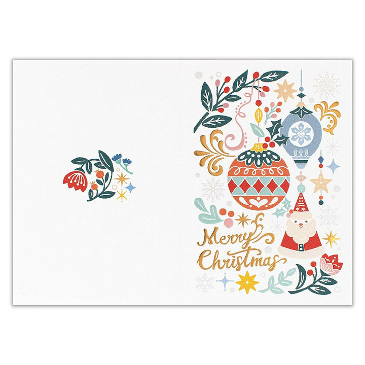 Bring a touch of holiday cheer to your message with our Christmas ornaments! The card showcases charming illustrations and boasts pearl silk printing, embossing, and gold foil stamping. Even the inside has a festive design to make your note stand out.