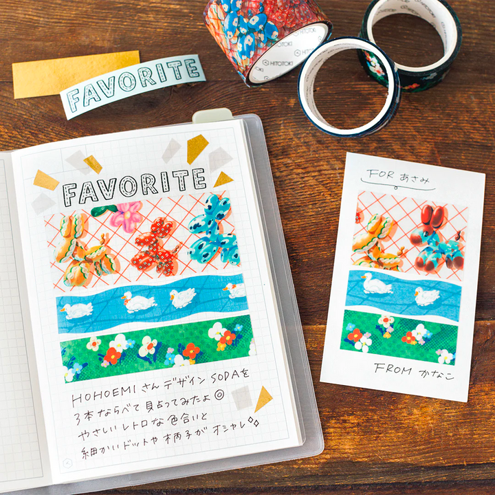 Colorful masking tape crafted from film material. Easily cut and place it on any surface for a touch of whimsy. The weak adhesive allows for easy repositioning. With its vibrant hues, it's perfect for adding a pop of color to your projects!