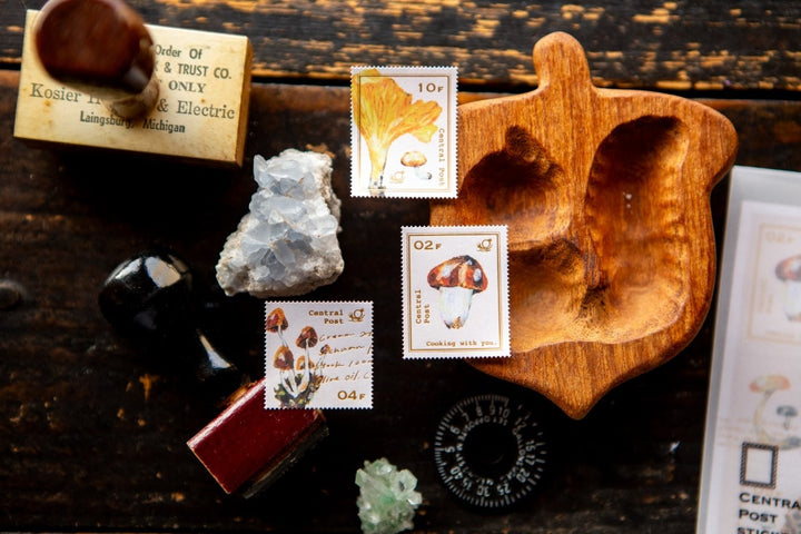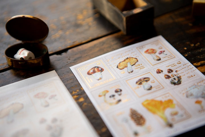 Celebrate your love of mushrooms with these charming stamp stickers featuring beloved varieties like chanterelles, porcini, morels, and matsutake. Perfect for adding a whimsical touch to your correspondence.